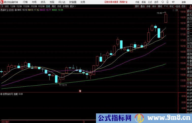 X_4:=CLOSE/REF(CLOSE,1)>1.097 AND CLOSE=HIGH;