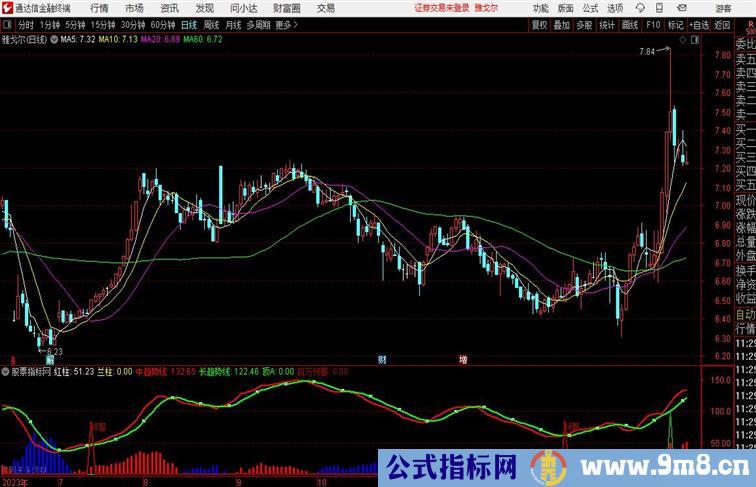 长趋势线:(SUM(中趋势线,6)) / 6,LINETHICK2,COLORGREEN;