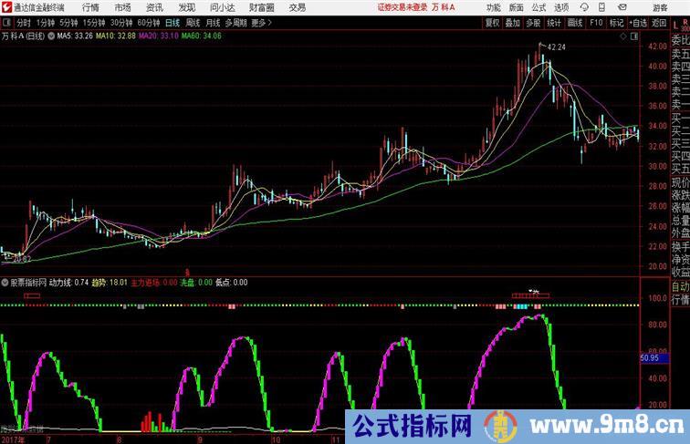 STICKLINE(动力线>=3.2 AND 动力线<3.45 AND ISLASTBAR AND ((PP103>PP101 AND PP103PP101),65,72,2,0),COLORLIRED;{阶段卖出,粉红}