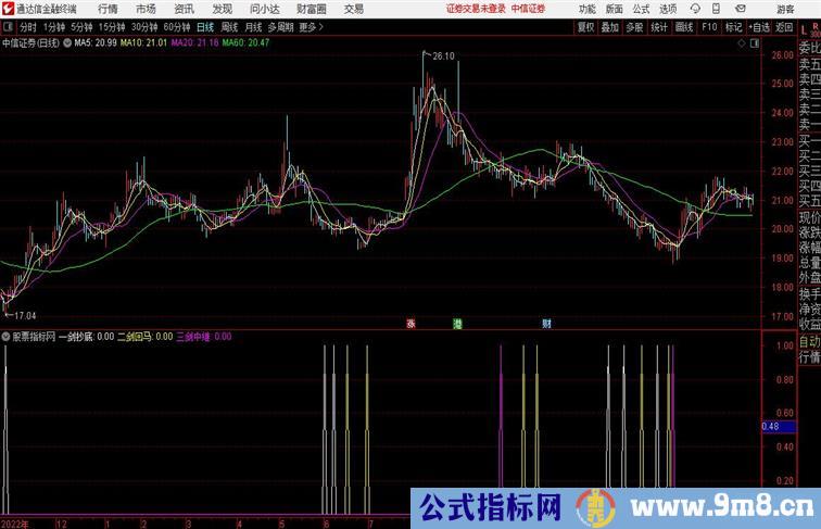 三剑中继:(DQX-REF(DQX,1) > 35 AND REF(DQX,1) < 30 ) AND 中继区 AND C>O AND ( MA(C,20) > REF(MA(C,20),1) AND REF(MA(C,20),1) > REF(MA(C,20),2) ) OR (DQX-REF(DQX,1) > 40 AND REF(DQX,1) < 5 );