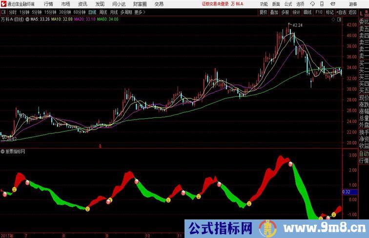 X_1:=EMA(CLOSE,6)-EMA(CLOSE,18); X_2:=EMA(X_1,9); DRAWBAND(X_1,RGB(200,0,0),X_2,RGB(0,200,0)); X_3:=CROSS(X_1,X_2); X_4:=CROSS(X_2,X_1); DRAWICON(X_3,X_1,3); DRAWICON(X_4,X_2,13);