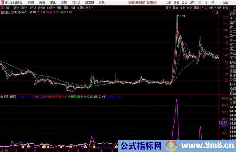 主力进: IF(V4>=0,V4,0)*100,COLORFF00FF,LINETHICK2;