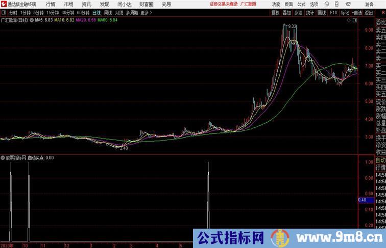 N:=18 ; LOWV:=LLV(LOW,N); HIGHV:=HHV(HIGH,N); MAV:=MA(V,3) ; 横盘:=((HIGHV-LOWV)/N)<0.15; 放量1:=V>=1.8*MAV; 今天大阳:=(C-REF(C,1))/REF(C,1)>=0.05; 启动买点:横盘 AND 放量1 AND 今天大阳;
