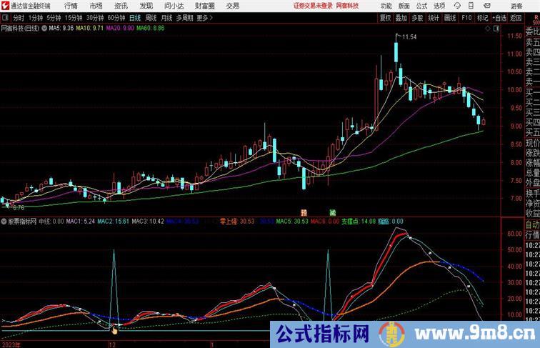 支撑点:EMA(MAC1,24)-1.05*STD(MAC1,24),DOTLINE,COLORGREEN;
