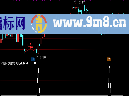 A1:=C/REF(C,1)>1.087;A2:=MA(C,25)*0.86;A3:=CROSS(A2,L);A4:=COUNT(A3,3)>=1;抄底涨停:A4 AND A1;九毛八公式解读 A1赋值:收盘价/1日前的收盘价>1.087 A2赋值:收盘价的25日简单移动平均*0.86 A3赋值:A2上穿最低价 A4赋值:统计3日中满足A3的天数>=1 输出抄底涨停:A4 AND A1