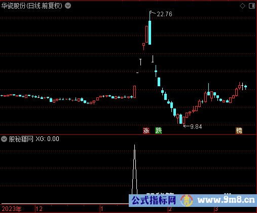 A2赋值:当前流通股本(手)<8000000 AND 开盘价>0 A3赋值:收盘价<45 AND 1日前的最低价<收盘价的5日简单移动平均 A1赋值:最低价<收盘价的5日简单移动平均 AND 收盘价>=1日前的收盘价*1.07 试盘赋值:(A1 AND A2 AND A3)*2 XX1赋值:(收盘价+最低价+最高价)/3 BB13赋值:XX1的13日指数移动平均-1日前的XX1的13日指数移动平均的反正切*3.1416*10 EMA8赋值:收盘价的8日指数移动平均 输出XG:(试盘 AND BB13>1ANDEMA(XX1,13)>1日前的XX1的8日指数移动平均的10日过滤)*5