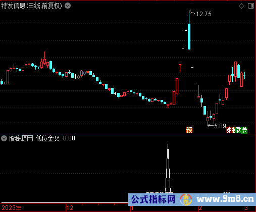 低位金叉:长期线<15 AND REF(长期线,1)<15 AND 中期线<18 AND 短期线>REF(短期线,1) ANDCROSS(短期线,长期线) AND 短期线>中期线 AND (REF(短期线,1)<5 OR REF(短期线,2)<5 ) AND (中期线>=长期线 OR REF( 短期线,1)<1 );