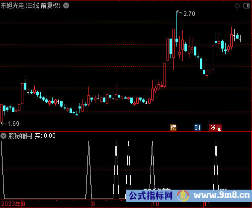 VAR1赋值:(9日内最高价的最高值-9日内最低价的最低值) VAR2赋值:(9日内最高价的最高值-收盘价) VAR3赋值:(收盘价-9日内最低价的最低值) VAR4赋值:VAR2/VAR1*100-70 VAR5赋值:(收盘价-60日内最低价的最低值)/(60日内最高价的最高值-60日内最低价的最低值)*100 VAR6赋值:(2*收盘价+最高价+最低价)/4 VAR7赋值:(VAR3/VAR1*100)的3日[1日权重]移动平均 VAR8赋值:34日内最低价的最低值 VAR9赋值:VAR7的3日[1日权重]移动平均-VAR4的9日[1日权重]移动平均 VAR10赋值: 如果VAR9>100,返回VAR9-100,否则返回0 VARA赋值:34日内最高价的最高值 防线B赋值:(VAR6-VAR8)/(VARA-VAR8)*100的8日指数移动平均,画白色 B1赋值:防线B的5日指数移动平均 买卖赋值:防线B-B1,画青色 卖出赋值:(1日前的买卖>0 AND 买卖<=0) OR (买卖< 1 AND 买卖>=0 AND 收阴线),画红色 买入赋值:卖出=0 AND 1日前的买卖< 0 AND 买卖>0,画红色 输出买:买入