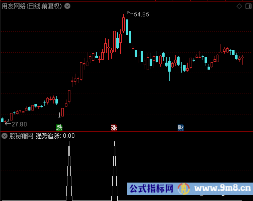 W赋值:((-((100)*(21日内最高价的最高值 - 收盘价))/(21日内最高价的最高值 - 21日内最低价的最低值))) RG赋值:(收盘价-5日内最低价的最低值)/(5日内最高价的最高值-5日内最低价的最低值)*100 RV赋值:(收盘价-27日内最低价的最低值)/(27日内最高价的最高值-27日内最低价的最低值)*100 ★股市黑客★赋值:RV的3日[1日权重]移动平均 普通投资者赋值:★股市黑客★的5日[1日权重]移动平均 KK1赋值:RG的3日[1日权重]移动平均的2日指数移动平均 DD2赋值:KK1的3日[1日权重]移动平均 输出强势追涨:W上穿-2 AND ★股市黑客★上穿普通投资者 AND KK1上穿DD2