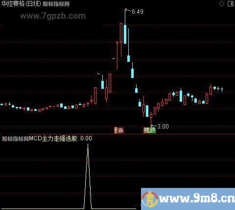 MCD主力走强选股:IF(crOSS(X_9,X_7) AND MACD>X_7,0.2,0),COLORYELLOW;