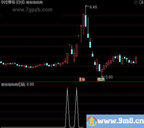 红钻:ZF>9 AND STZF< 18 AND 短线航标>=REF(短线航标,1) AND (拉升线-REF(拉升线,1)>70) AND REF(拉升线,1)< 50;