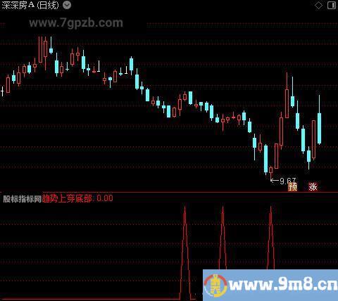趋势上穿底部:crOSS((趋势),底部),COLORRED;