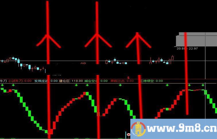 果断出击:IF(CROSS(端庄窝,0.01),18,0),STICK,COLOR0000CC,LINETHICK2;