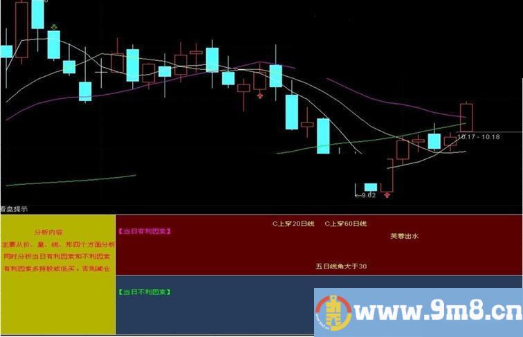 DRAWTEXT_FIX(1,0.21,0.32,1,'同时分析当日有利因素和不利因素'),COLORRED;