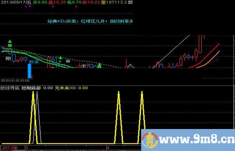 买点:=IF(CROSS(M18,M2),5,10* 10000),COLORFF00FF,LINETHICK2;