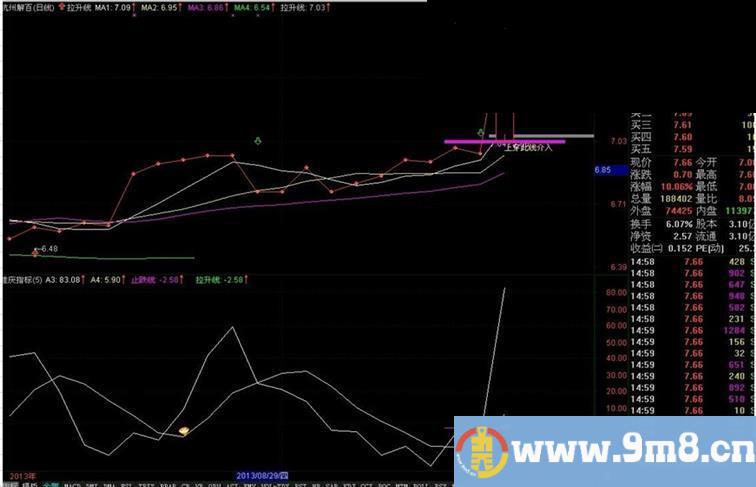 拉升线:IF(CURRBARSCOUNT=1 AND REF(C,1)REF(C,1) AND MA1>REF(MA1,1),CONST(REF(C,1)*1.01),DRAWNULL);