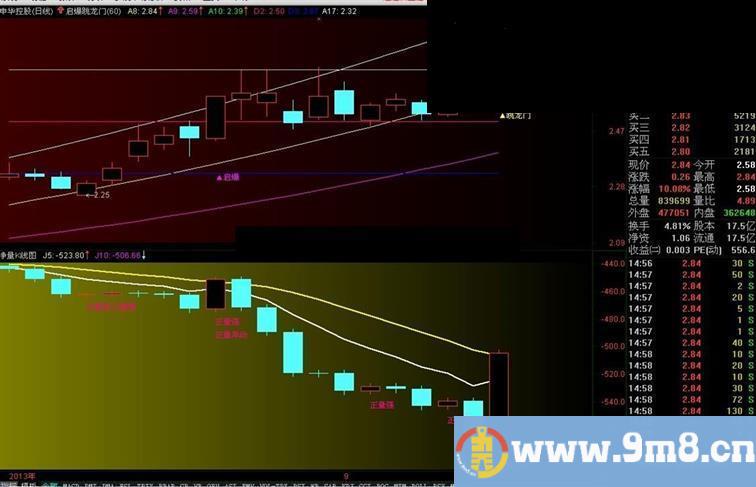 DRAWTEXT(XG,REF(J2,1)*1.02,'正量强'),COLORLIMAGENTA;
