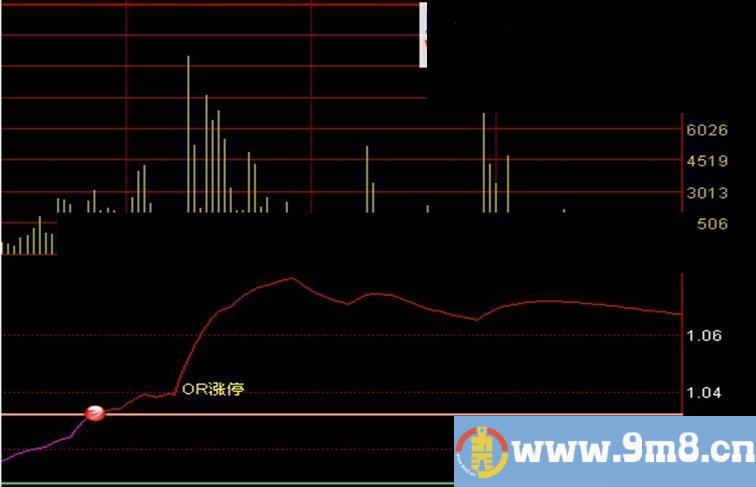 DRAWTEXT(CROSS(EXPMA((DCLOSE/TOU),20),1.04),1.04,'OR涨停'),COLORYELLOW;