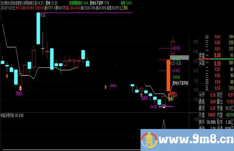 收盘买:=-(EMA(IF(L<=AA,XD/CD,-3),9));