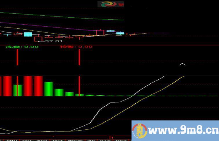预警:IF(CROSS(ZLGJ,MAZL),80,0),STICK,LINETHICK2,COLORRED;