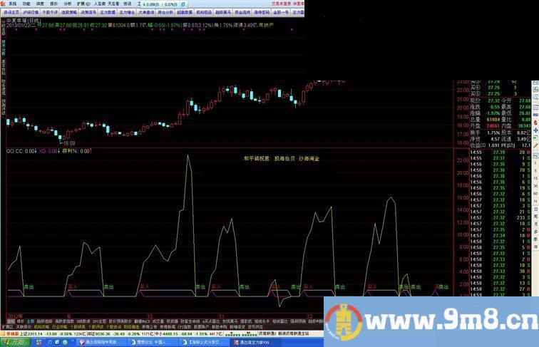 智能买卖附图简单明了,跟着买卖就行了,上面的黄线是买入后的获利比例,选股等于1。