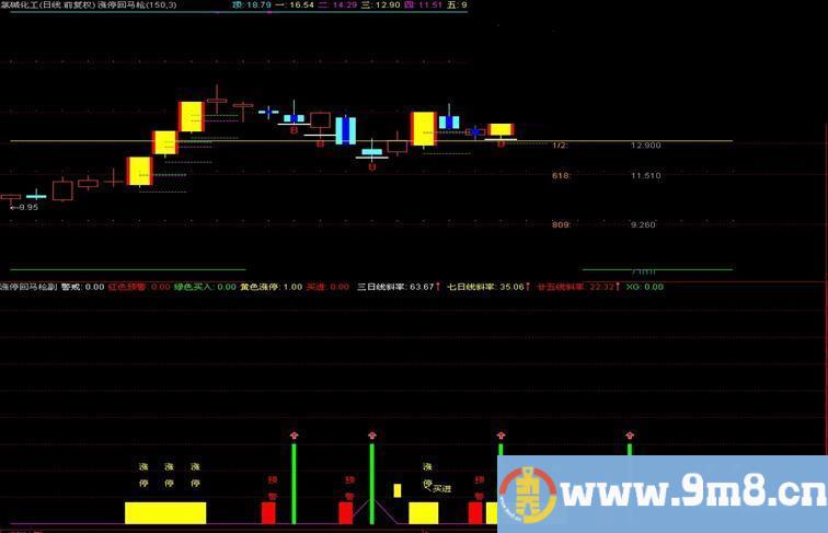 涨停回马枪操盘就是在每天盘后选出股票涨停板以后出现的洗盘预警信号的股票,第二天在最低价附近(绿色横条)买入,轻松跟随庄家拉升获利!公式源码包括了主图副图及选股公式.
