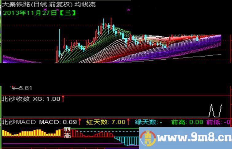 2、当MACD多组红、绿柱呈现收敛形态时,提示我们整理进入尾声;