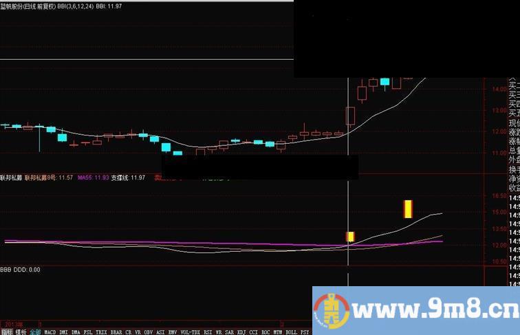 支撑线:(MA(CLOSE,3)+MA(CLOSE,6)+MA(CLOSE,12)+MA(CLOSE,24))/4,COLORFFFFFF;