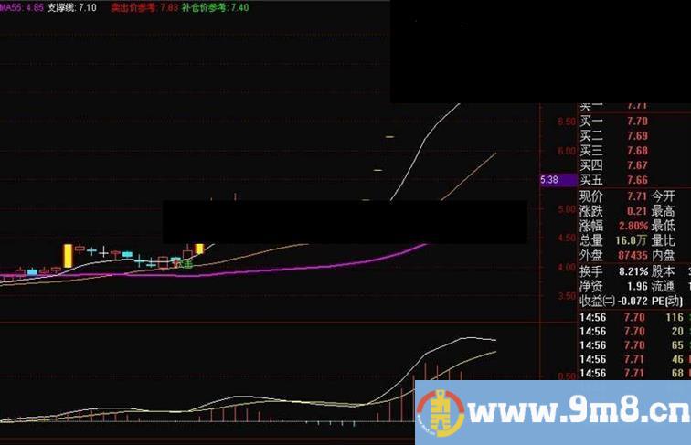 支撑线:(MA(CLOSE,3)+MA(CLOSE,6)+MA(CLOSE,12)+MA(CLOSE,24))/4,COLORFFFFFF;