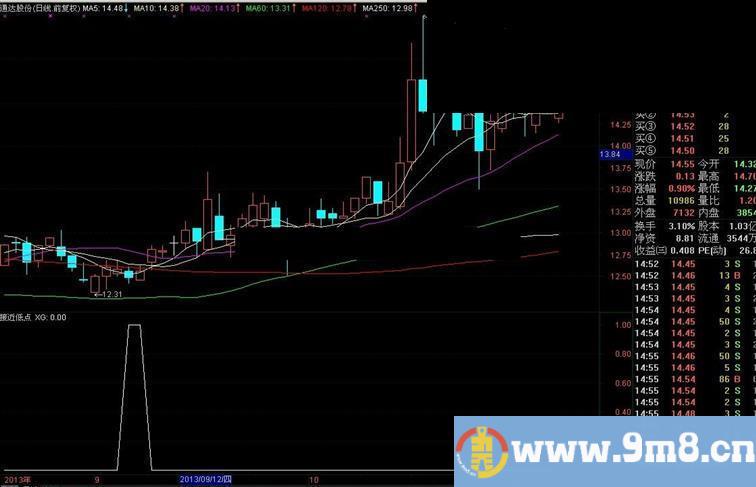 指标理念:1.振幅连续5天小于3个点,2.三线顺下,3.成交量小于40日最低点*1.03;