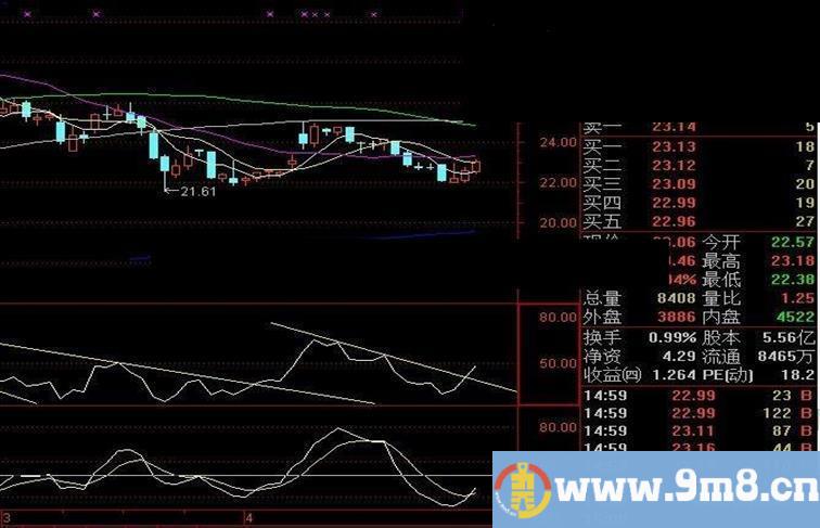可以看到,rsi(周期设为都9,趋势线是我自己画的)。