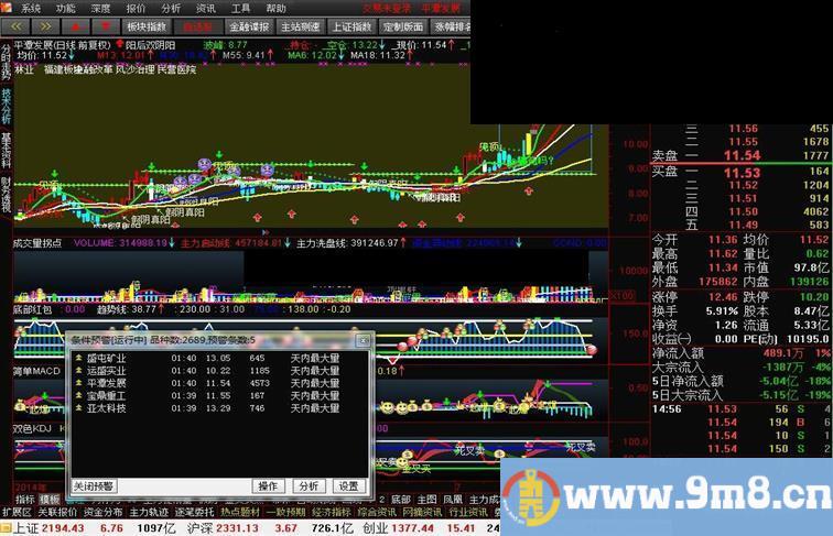 股价:=C>=5.78 AND C<14.98;{9.75}{14.98}