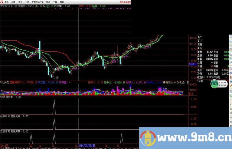 1、三个附图指标:三个指标在底部同时出现:可买入,最好是三底信号出现后然后经过反复打底在买。