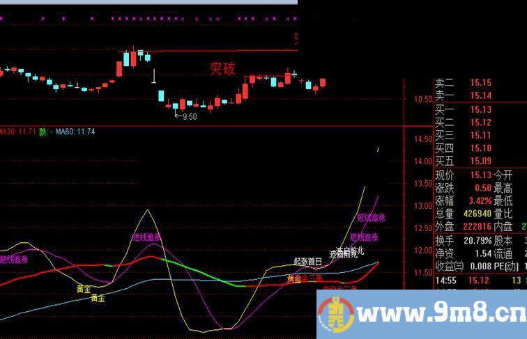 DRAWTEXT(DD1 OR DD2 OR DD3,L-0.02,'短线追涨'),COLORFF00FF;