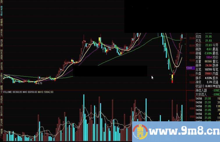 DD2:=BARSLAST(NOT(BB2=0)); B:=IF(BB2=0,REF(BB2,DD2),BB2); 中短:=IF(B=-1,MA(HIGH,6),MA(LOW,6)); STICKLINE(((OPEN STICKLINE(((OPEN>CLOSE)AND(MA7>中短)),OPEN*1.002,CLOSE*0.998,3.05,0),COLORRED; DRAWKLINE(H,O,L,C); STICKLINE(MA7<中短,HIGH,MAX(C,O)*1.002,0,1),COLORCYAN; STICKLINE(MA7<中短,LOW,MIN(C,O)*0.998,0,1),COLORCYAN; STICKLINE(MA7>中短,HIGH,MAX(C,O)*1.002,0,1),COLORRED; STICKLINE(MA7>中短,LOW,MIN(C,O)*0.998,0,1),COLORRED; DRAWICON(CROSS(MA7,中短),L*0.999,7); DRAWICON(CROSS(中短,MA7),H*1.001,8); {加仓点} AAA7:=C-REF(C,1); AAA8:=100*EMA(EMA(AAA7,6),6)/EMA(EMA(ABS(AAA7),6),6); BU:=(LLV(AAA8,2)=LLV(AAA8,7) AND COUNT(AAA8<0,2) AND CROSS(AAA8,MA(AAA8,2))); JCD:=MA(C,10)>REF(MA(C,10),1) AND MA(C,5)>MA(C,10) AND V>MA(V,5) AND CROSS(C,MA(C,5)); {暗渡陈仓} CC1:=REF(C,1); C2:=REF(C,2); C3:=REF(C,3); C4:=REF(C,4); C5:=REF(C,5); C6:=REF(C,6); O1:=REF(O,1); O2:=REF(O,2); O3:=REF(O,3); O4:=REF(O,4); P1:=C2<=C3 AND C2<=C4 AND C2<=C5 AND C2<=C6; P2:=C>MA(C,5) AND C>MA(C,10) AND C>MA(C,20); P3:=C>O AND CC1>C2; P4:=C>CC1; P:=P1 AND P2 AND P3 AND P4 AND CC1/C2<=1.05; STICKLINE(JCD OR BU OR P,O,O+0.3*(C-O),2.9,0),COLORRED; STICKLINE(JCD OR BU OR P,O+0.3*(C-O),O+0.6*(C-O),2.9,0),COLORBROWN; STICKLINE(JCD OR BU OR P,O+0.6*(C-O),C,2.9,0),COLORYELLOW; {步步为营} M5:=EXPMA(C,5); M60:=EXPMA(C,60); BBTJ1:=REF(O/C>1.04,1); BBTJ2:=O<=REF(C,1) AND C>REF(H,1); BBTJ3:=IF(O>EXPMA(C,10),O/EXPMA(C,10)<1.05,O*0.97 BBTJ4:=EXPMA(C,10)>EXPMA(C,60) AND EXPMA(C,10)/EXPMA(C,60)<1.25; BBXG:=BBTJ1 AND BBTJ2 AND BBTJ3 AND BBTJ4; DRAWICON(BBXG,L*0.93,1); 转强:=(6*H+5*REF(H,1)+4*REF(H,2)+3*REF(H,3)+2*REF(H,4)+1*REF(H,5))/(6+5+4+3+2+1); 转弱:=(6*L+5*REF(L,1)+4*REF(L,2)+3*REF(L,3)+2*REF(L,4)+1*REF(L,5))/(6+5+4+3+2+1); BB2:=IF(C>REF(转强,1),1,IF(C