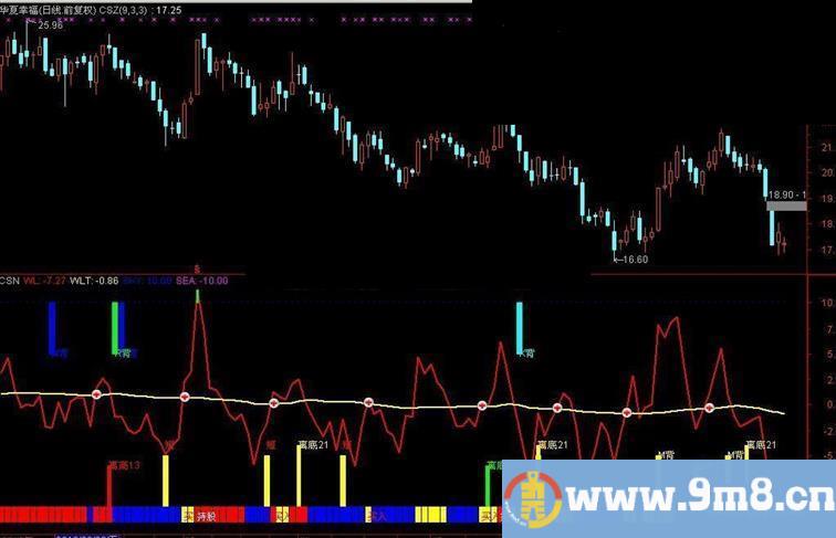DRAWTEXT(FILTER(WLT2 OR WL>WLT,13),-11,'买入'),COLOR0000FF;