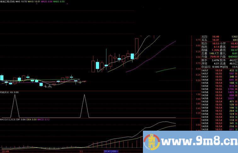 结合二次放量,回靠43天均线为买点!此指标没有未来函数,中意的朋友拿去参考。
