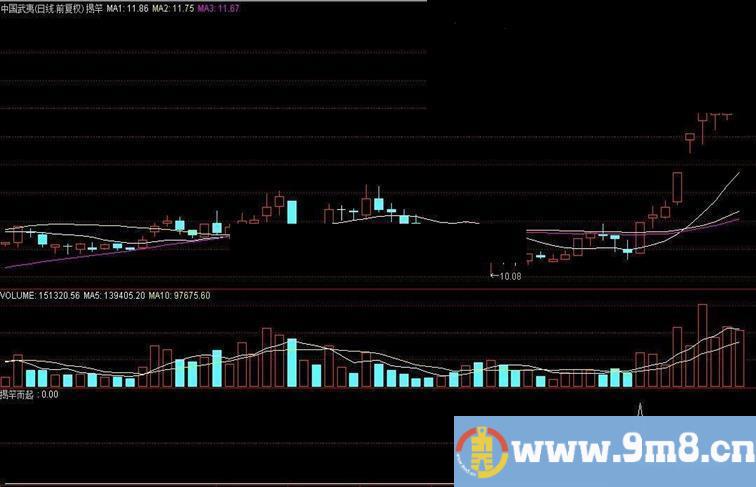 {揭竿而起选股指标} CJXG:CROSS(C,MA(C,13)) AND CROSS(C,MA(C,34)) AND CROSS(C,MA(C,55)) AND MAX(C,O)/MIN(C,O)>1.05 AND REF(C,1) AND V>REF(V,1) AND (REF(MA(C,13),1)