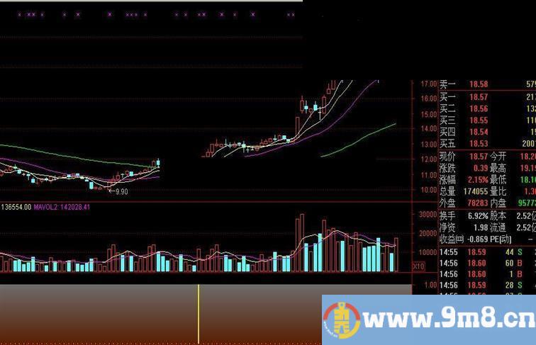 V/REF(MA(V,5),1)>2,REF(V2,1),STICK,COLORYELLOW,LINETHICK2;