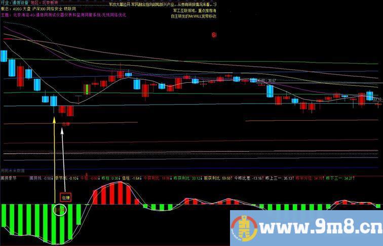 3)、如在绿色柱出现的弱势区域进行介入,以轻仓为主,不宜重仓