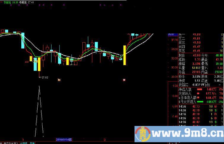 当天会有一个涨停,指标发出信号。第二天犹豫压力会出现一个十字星,逢低买入,第三天逢高卖出,稳赢5个点。牛熊均可用