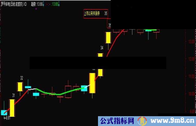 DRAWTEXT_FIX(CURRBARSCOUNT=1,0.45,0.02,0,'上市以来共涨停'),COLORYELLOW;