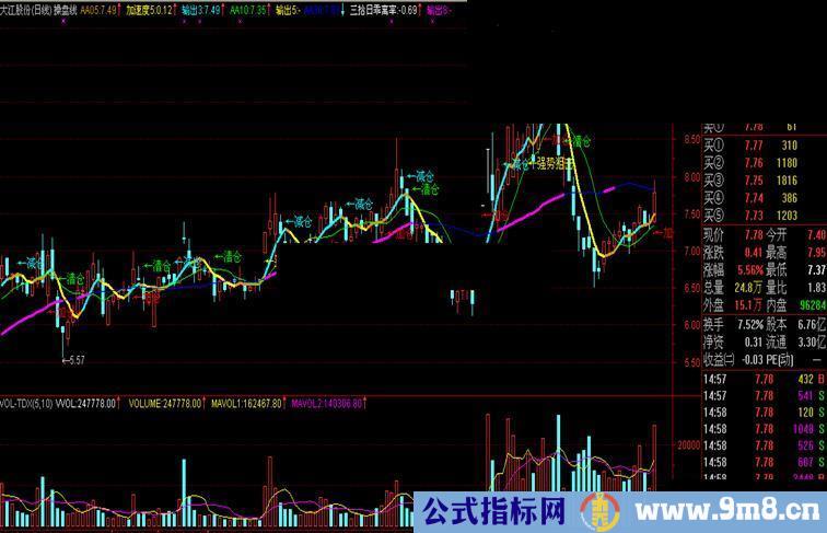强牛线:=DMA(YC_AA,VOL/SUM(VOL,70)),LINETHICK0;