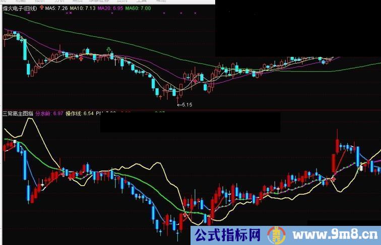 操作线:分水岭-(EMA(C,3)-分水岭),COLOR00FFFF,LINETHICK2;