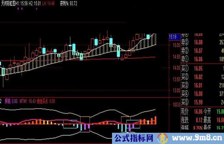 黑马白金-主图用法:当白线上穿黄线时为买点,出现黄柱子逐渐放大看涨股价站上红线为强势;反之,为卖点,出现蓝柱子并逐渐放大为弱势。