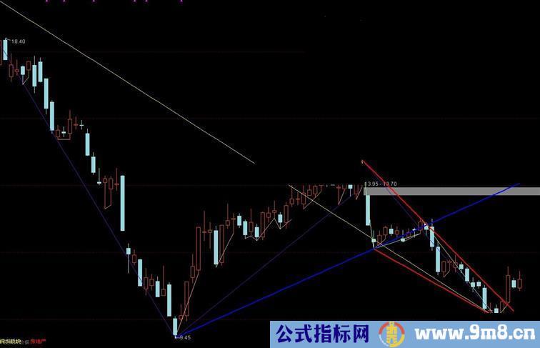 DRAWLINE(H=HHV(H,21),H,L=LLV(L,21),L,0),COLORC100FF;