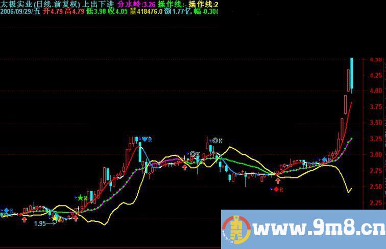 分水岭:IF(MA(CLOSE,17)操作线:分水岭-(EMA(C,3)-分水岭),COLOR00FFFF,LINETHICK2;