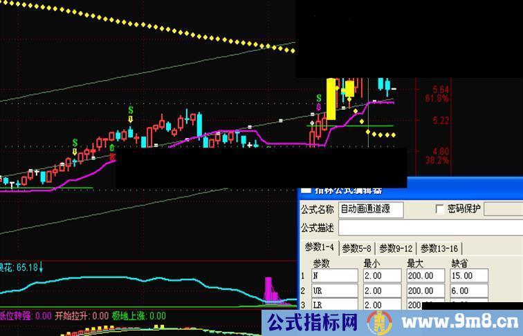 下轨:IF(NP>FP,IF(UTL<=RH,UTL,DRAWNULL),IF(UTL>=RL,UTL,DRAWNULL)),COLOR628962;