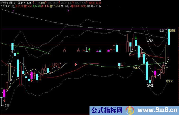 IF(五V<=REF(五V,1) ,离C,DRAWNULL),COLOR00FF00,LINETHICK1;