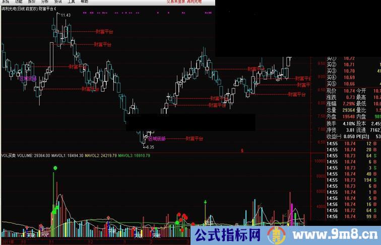 DRAWTEXT(VOL=HHV(VOL,20),C ,B1),COLORRED;